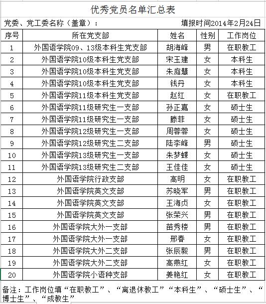 2014年2月优秀党员名单汇总表