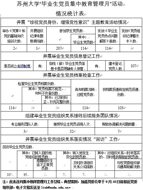 小说网 “毕业生党员集中教育管理月”活动情况统计表