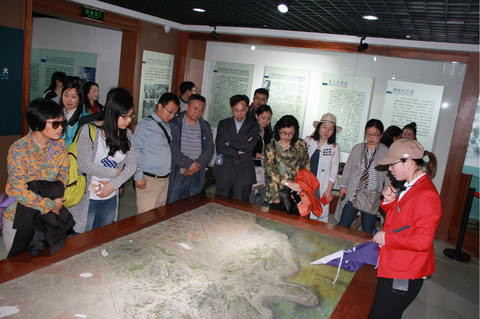 老师们首先参观了江阴军事文化博物馆。百万雄师横渡长江的“渡江第一船”赫然屹立于博物馆正门外;身铸“耀武大将军”字样的万斤古炮一尊岿然立于博物馆庭院内。从宋代岳家军抗击金兵,到近代清军抗击外侮;从抗日战争兵戈风云,到解放军横渡长江,再到现代军事战舰和遥感测控船横空出世,博物馆如同一部军事历史教育的形象化教材, 以图片、文字和实物的方式展现了江阴各个历史时期的硝烟战火和新中国军事和科技实力。千百年来,这片热土涌现出的大批忠烈刚毅的英雄儿女,积淀下的豪壮雄伟的革命文化让参观的老师们动容,深感今天的幸福生活来之不易,作为党员的我们,更应该坚定信念,敢于担当,在和平年代努力做“四讲四有”的合格党员,为教育事业做出应有的贡献。