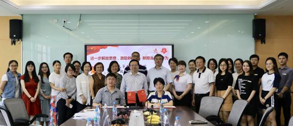 小语种党支部书记陆洵老师分别介绍了支部的党建工作情况,双方党员教师就“进一步解放思想,激励新时代、新担当、新作为”这一主题展开了热烈的讨论,大家认为要办好优质教育,要注重的是内涵建设的优质和高品位,意味着更高的质量,更鲜明的特色,而内部变革力量的推动,也就是进一步的解放思想破解难题是内涵发展的内驱力。双方一致决定:在国际化多语种教学中,双方两个基层党支部可以建立长期、稳定的协作关系,通过共建活动平台、分享工作资源、交流工作经验、解决实际问题等途径,共促语言教研与教学改革的发展。在双方50多位党员教师的共同见证下,张彤老师和陆洵老师代表各自支部共同签署了《党支部结对共建协议书》,共筑组织基础,共促队伍建设,共谋双方发展,进一步解放思想,以优质教育为中心,引领好课堂改进、学科发展、优质学校建设和团队进步,共同促进双方的基层党组织建设和教学发展。