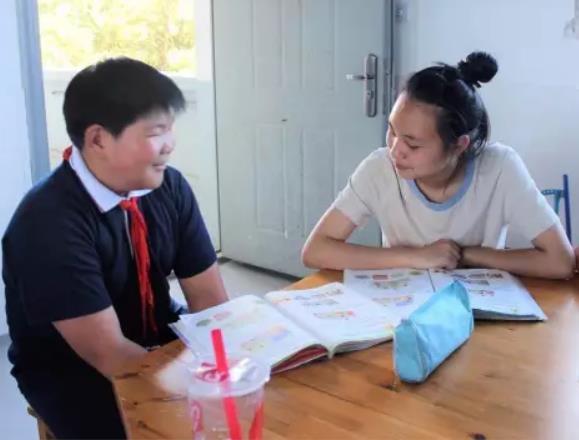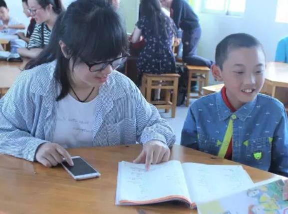 第一组的志愿者老师采取了因材施教的方法,对于基础较好的同学进行了发音纠正,对小胖同学则是耐心地讲解单词和课文。小胖在老师的指导下渐渐开始开口说英语了~