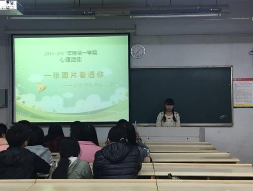 19:00,同学们全部到场,心理活动正式开始。简单的开场白后,活动进入第一环节,在心理委员的引导下,同学们对一系列视觉与错觉图片进行赏析,这些图片都是利用视觉角度、色彩对比或者透视原理产生一种视觉上的错觉,而这种错觉,事实上反映出人当前的心理状况以及左右脑的开发程度。赏析每一张图片时,同学们的反应各不相同,有的同学表示可以看出一些隐藏的图形,有的同学则看不出;有的同学认为看到的图片在旋转,有的同学则认为是静止的;有的同学认为图片是一个整体,另一些同学则认为图片是多个图形组成的。这其实是同学们心理状况的真实写照,反映出有些同学可能近期压力较大,有些同学可能在思维中更多使用左脑,有些同学对某一事物的关注点可能与常人不同。最后,心理委员对这一环节做了总结:人类左右脑分工的而不同导致了眼睛所看到的图像在左右脑处理时的不同,从而决定了人们对同一图像的认识的不同;此外,人们不同的反应也与人的心理状况直接相关。