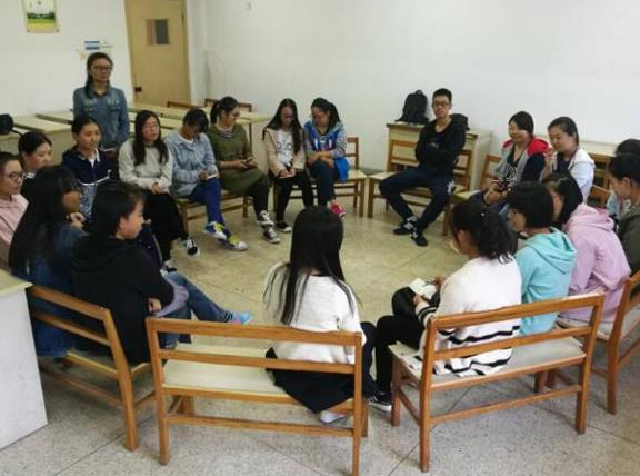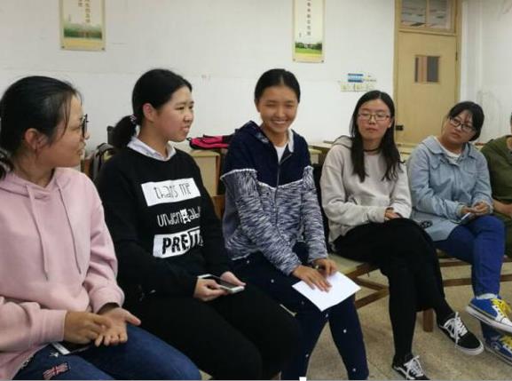 首先,我们热烈欢迎了前来带领大家进行团辅游戏的学姐,在学姐的指导下,大家迅速将椅子围成一圈并依次坐下,第一个游戏“叠罗汉”在同学们热切的目光中展开了,游戏规则是:同学们按顺序介绍自己的名字和爱好,并依次复述前面同学的信息。游戏不仅考验了我们的记忆力,更重要的是,让我们对彼此有了最基础的了解。过程充满了欢乐,同学们的爱好千奇百怪,各具特色,笑声弥漫在教室里,感染着每一个人,隔膜正在慢慢消失。