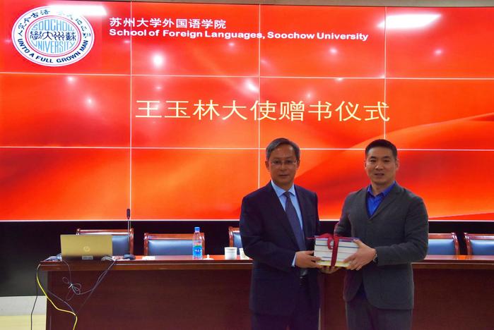 3月28日,中共中央对外联络部拉美局原局长、中国前驻厄瓜多尔大使、中国拉丁美洲学会副会长王玉林应邀访问小说网 ,为师生捐赠三百余册珍贵书籍,并举办学术讲座。出席捐赠仪式的嘉宾有王玉林大使夫人黄惠芬女士、苏州市外办美大处处长郭仁杰、小说网 国际合作交流处副处长资虹等。学院党委书记陶培之、院长孟祥春、副院长陆洵、副院长朱颖,以及西班牙语系全体师生参加了王玉林大使赠书仪式。赠书仪式由西班牙语系主任归溢主持。
