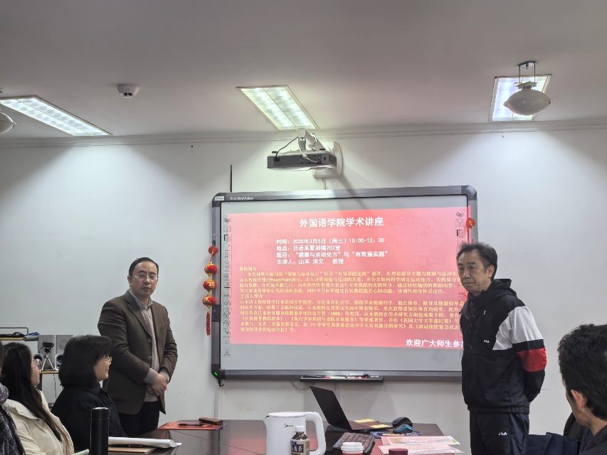 室举办了一场主题为“健康与运动处方”与“有氧操实践”的学术讲座。讲座由日语系副系主任潘文东老师主持。