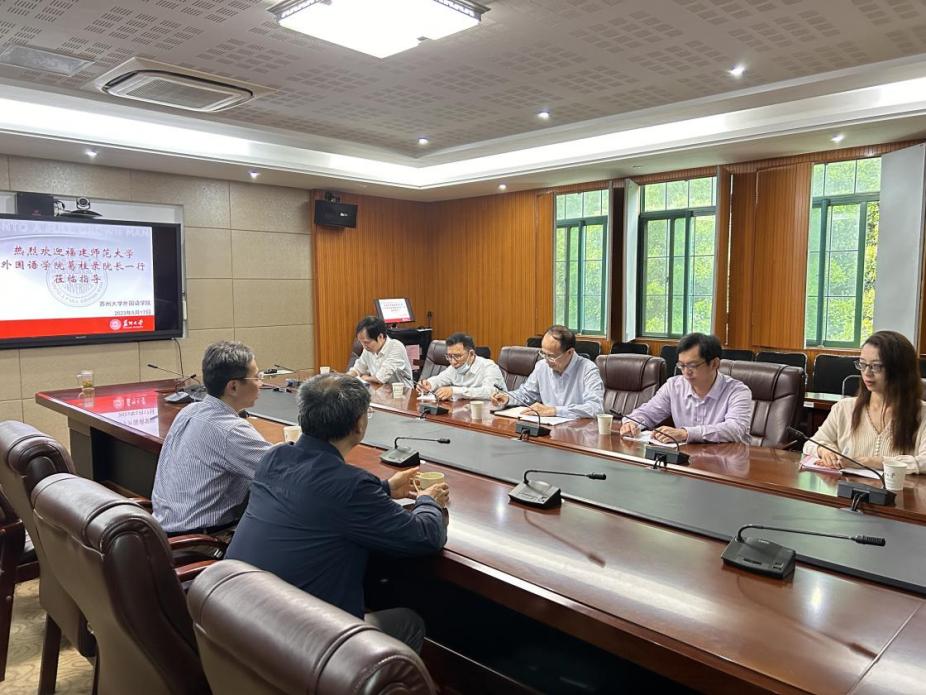 2023年5月17日下午,福建师范大学小说网 葛桂录院长一行来到小说网 开展交流与调研,小说网 党委书记严冬生、院长朱新福、副院长王军、副院长孟祥春代表学院接待。