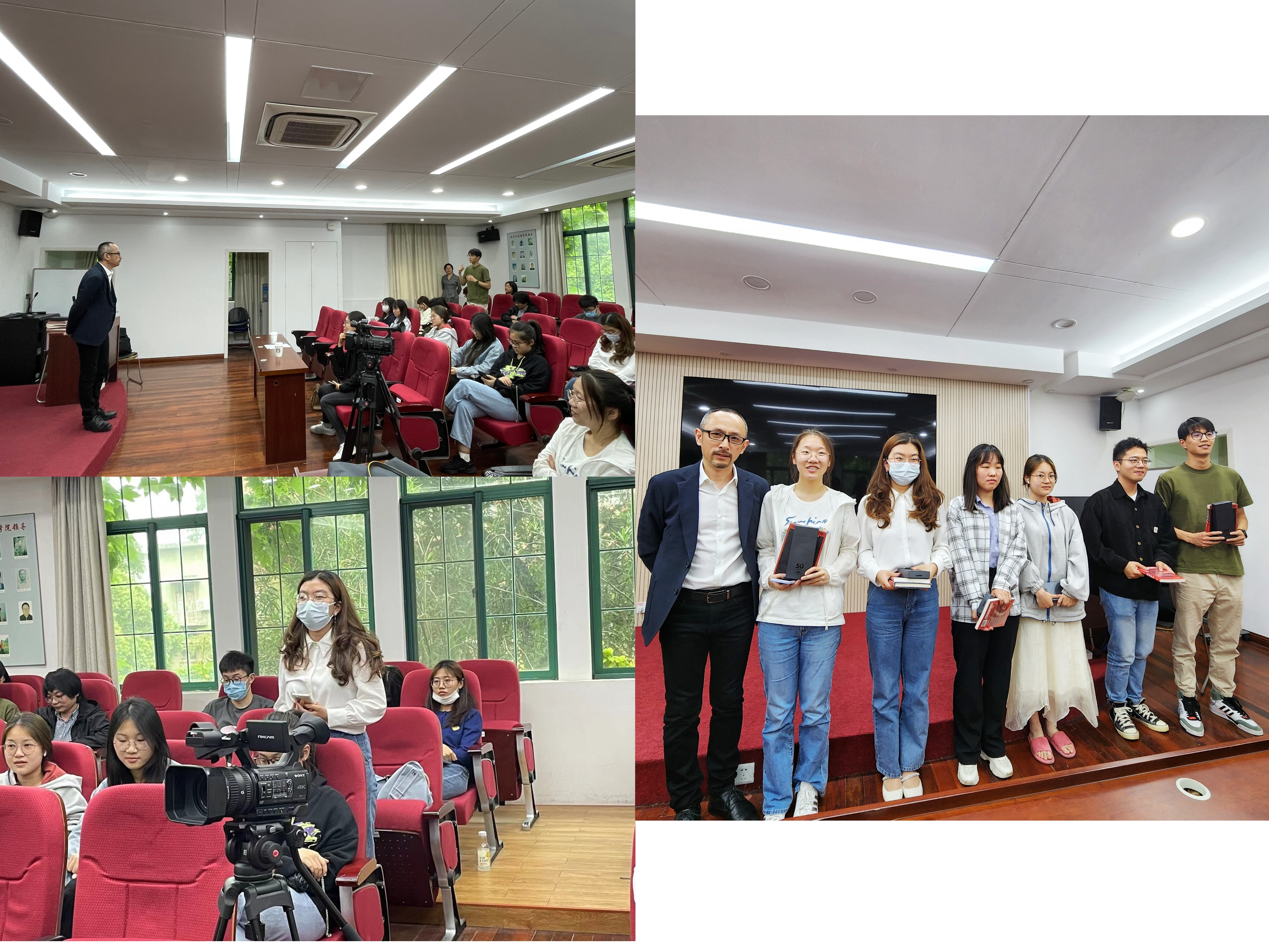 提问环节,3位同学分别就“日语等小语种专业的就业”“如何将复利思维运用到日常生活中”“企业领导看重大学生什么能力”等困惑提出疑问,李坚总经理不仅逐一回答,还精心为提问的同学准备了书籍、钢笔等礼物,鼓励同学们多提问、敢为人先。