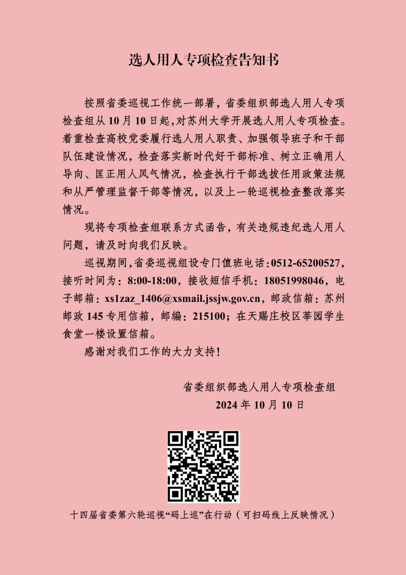 现将《省委第一巡视组巡视公告》及《省委组织部选人用人专项检查组选人用人专项检查告知书》公布如下: