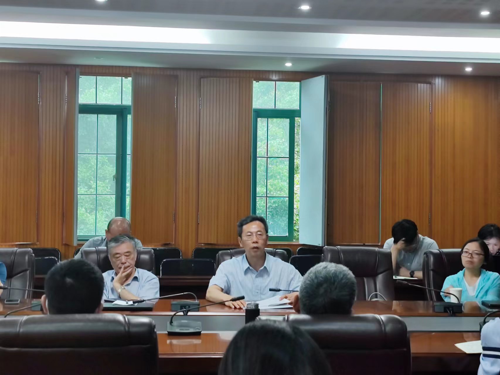 朱新福院长首先做主题发言。在发言中,朱院长强调了外语专业的重要性,并指出了在新形势下外语专业发展所面临的挑战。面对挑战,学院需要结合实际,对接国家战略,符合时代需求,积极推进外语专业建设和人才培养模式改革。他希望全院上下能够共同努力,既保持传统,也锐意革新。希望通过本次教授会议,各位与会人员积极为学院发展出谋划策,共商学院发展大计,推动学院各项事业蓬勃发展。