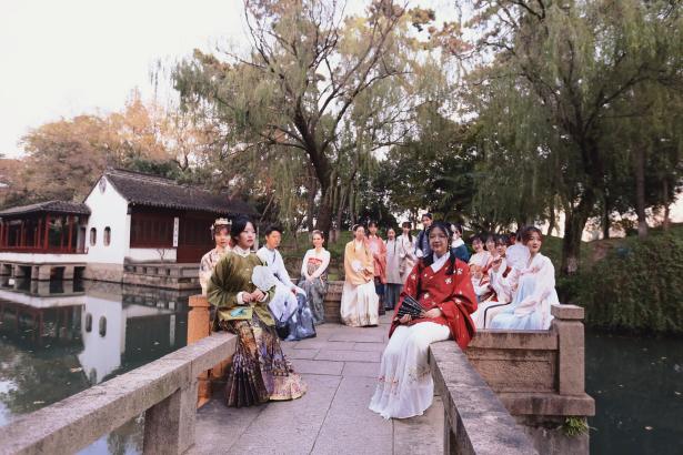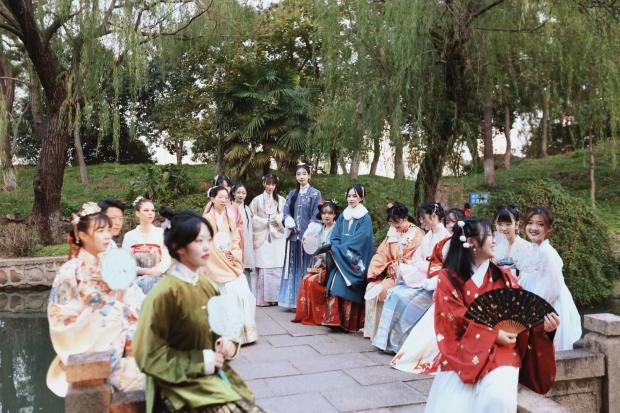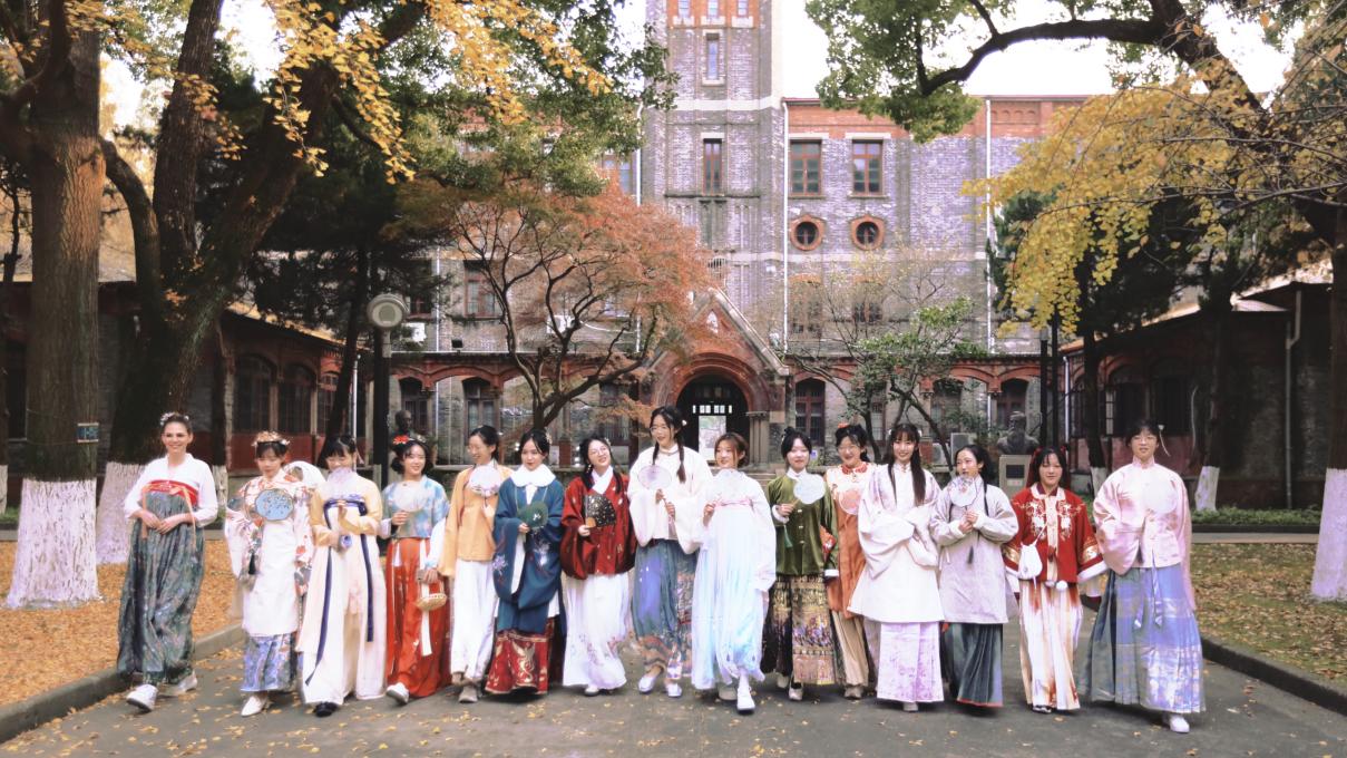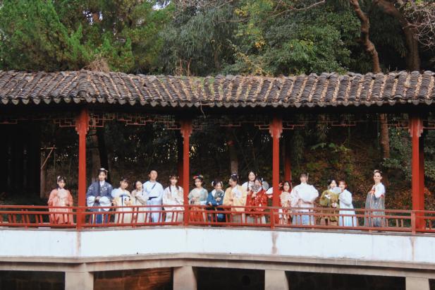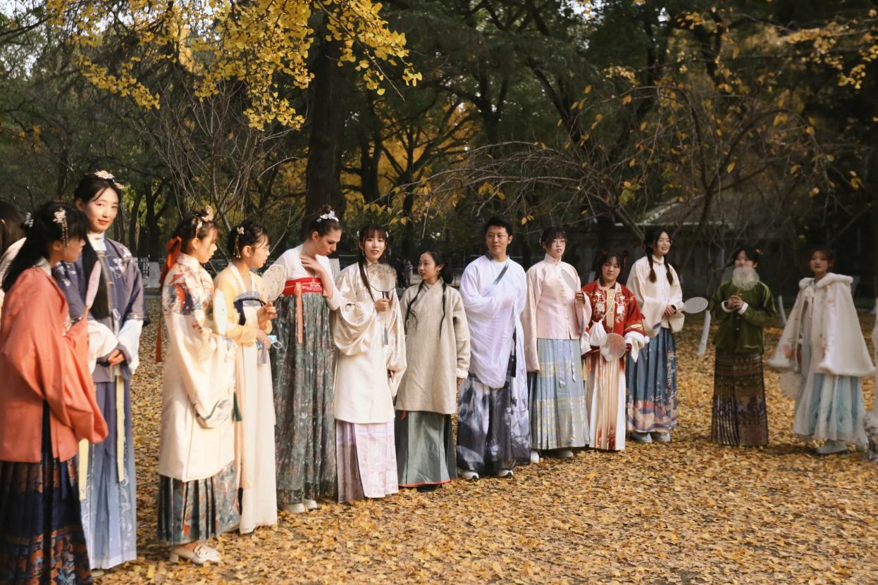 讲座后,大家身着汉服在秋日校园里漫步,实现了一场古典与新韵的美好碰撞。