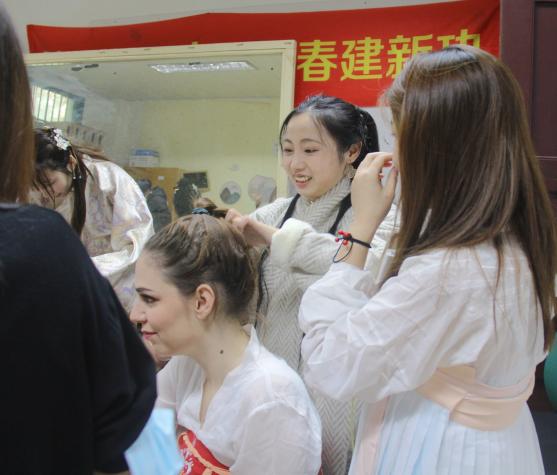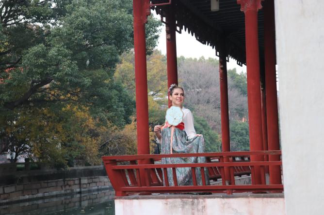 本次党日活动还邀请了文学院汉语言文学专业的留学生马一诺同学共同参与,作为汉文学爱好者的她也同样梳起长发、簪上发簪、身穿汉服,在古朴雅致的苏大校园里留下一道别样的风景线。活动结束后,马一诺同学感慨:此次党日活动对她来说非常有意义,感受到了中华文化传统服饰的魅力,在与各位师生的交流中也增强语言表达能力,锻炼交际能力,丰富文化体验。