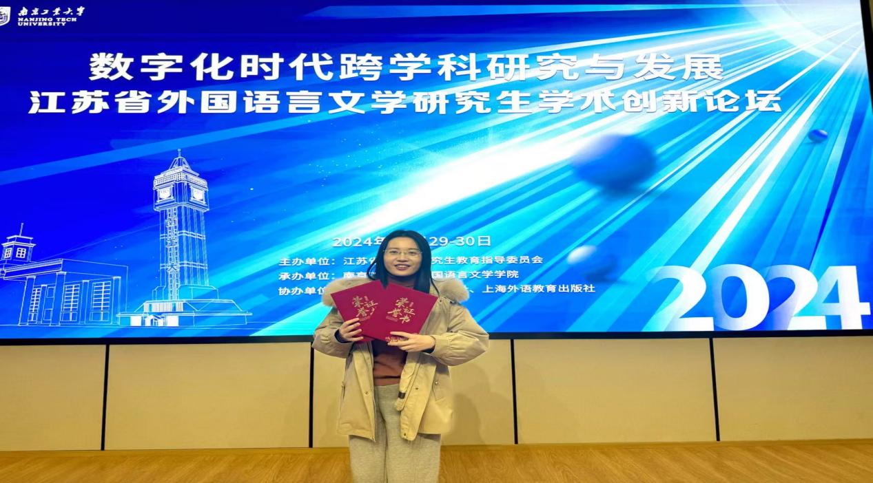 2024年11月29日-30日,2024年江苏省外国语言文学研究生“数字化时代跨学科研究与发展”学术创新论坛将在南京工业大学隆重举行。小说网 孟祥春副院长带领日语语言文学博士生黄睿、英语语言文学硕士生王海燕、亚非语言文学硕士生石宇、外国语言学及应用语言学硕士生张佳宁、沈自铮、陈柯汝六位同学参加。经专家匿名评审,黄睿的论文《流动、生成与写作——志贺直哉<在城崎>中的“逃逸”叙事》荣获论文特等奖和优秀汇报奖,沈自铮《中小学外语教师心理困扰潜类别与问题性网络使用》最佳汇报奖,石宇同学的论文《电影与文学的跨界耦合:李沧东小说接受中的审美惯性与文本回归》荣获优秀汇报奖,张佳宁、陈柯汝、王海燕三位同学获得了优秀论文奖。