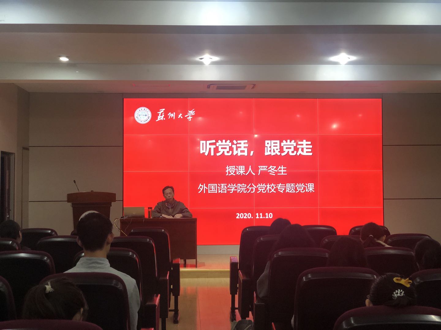 2020年11月10日下午6点,小说网 分党校“听党话,跟党走”专题党课在崇远楼201顺利开展。出席本次专题党课的有小说网 党委书记严冬生、研究生辅导员李袁老师以及本期入党积极分子和预备党员。党课由李袁老师主持,并由严冬生书记担任主讲人进行授课。
