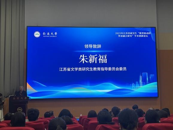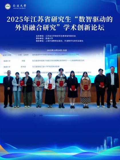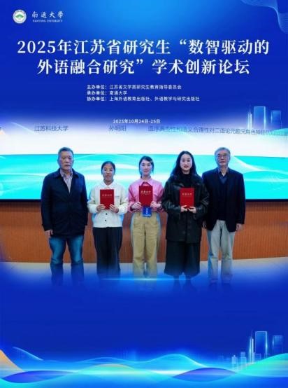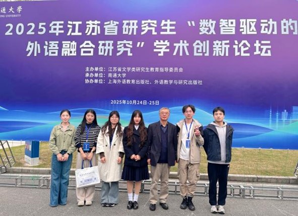 2025年10月24日-10月25日,2025年江苏省研究生“数智驱动的外语融合研究”学术创新论坛在南通大学隆重举行。本次论坛由江苏省文学类研究生教育指导委员会主办,南通大学承办,上海外语教育出版社、外语教学与研究出版社协办。