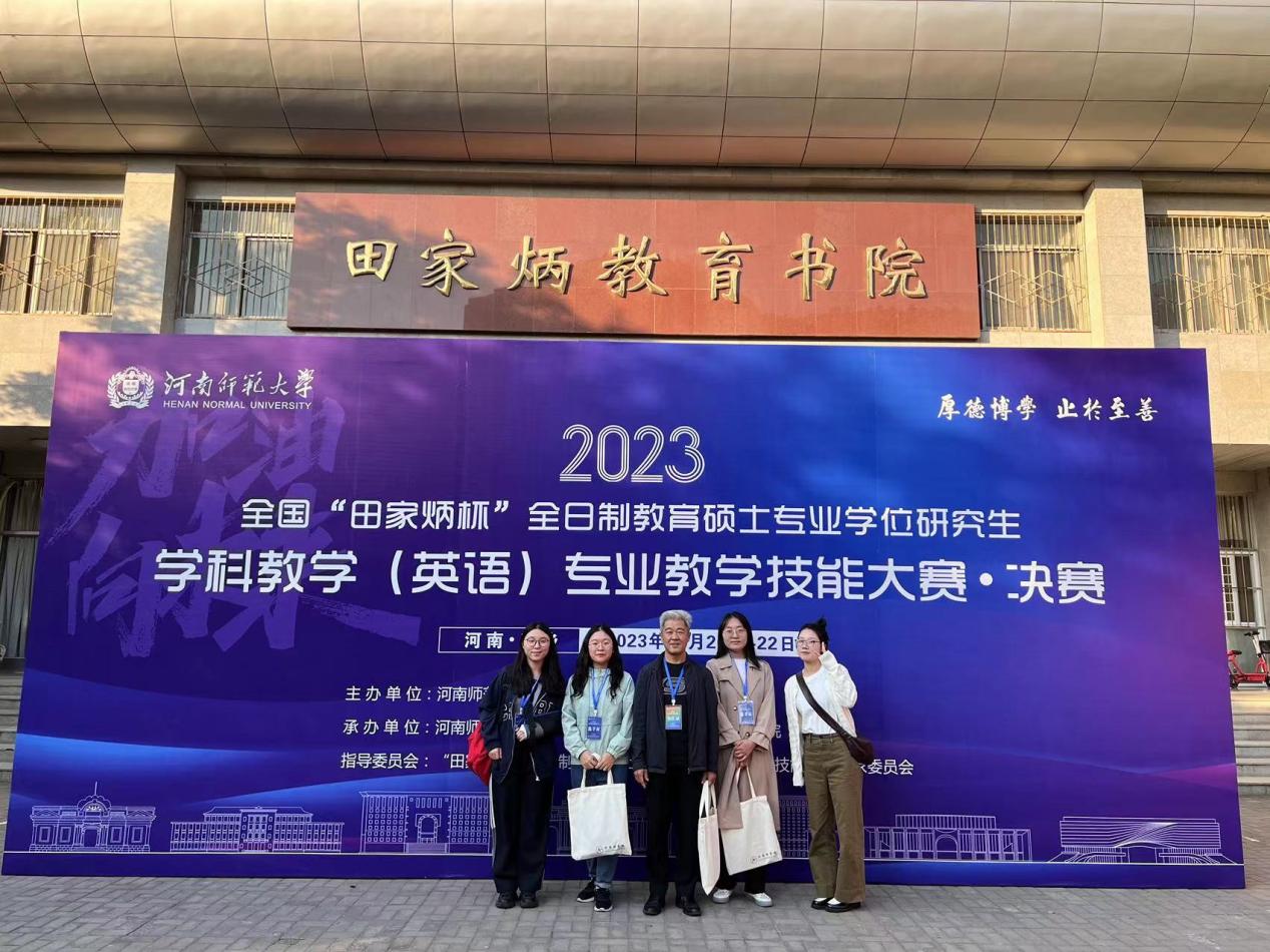2023 年 10月22日,由全国教育专业学位研究生教育指导委员会主办的“田家炳杯”全国全日制教育硕士专业学位研究生教学技能大赛总决赛在河南师范大学落下了帷幕。小说网 22 级学科教学(英语)专业四名研究生在高明强副教授带领下参加了此次决赛,并取得了优异成绩: 卓佳妹(指导教师高明强副教授) 获一等奖,郑思雅(指导教师衡仁权副教授)获二等奖,王昌娟(指导教师王海贞教授)、刘子怡(指导教师古海波副教授)分获三等奖,高明强副教授和衡仁权副教授获得优秀指导教师奖。