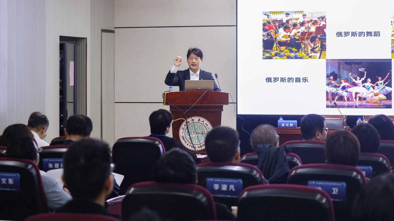 圆桌论坛顺利结束后,来自俄罗斯的两位院士--俄罗斯教育战略研究所古卡连科教授、莫斯科大学鲍利辛柯夫教授分别以《以时代的召唤:通过教育培养文化人》《文化生态环境与教育的任务》为题开启新的学术盛宴。