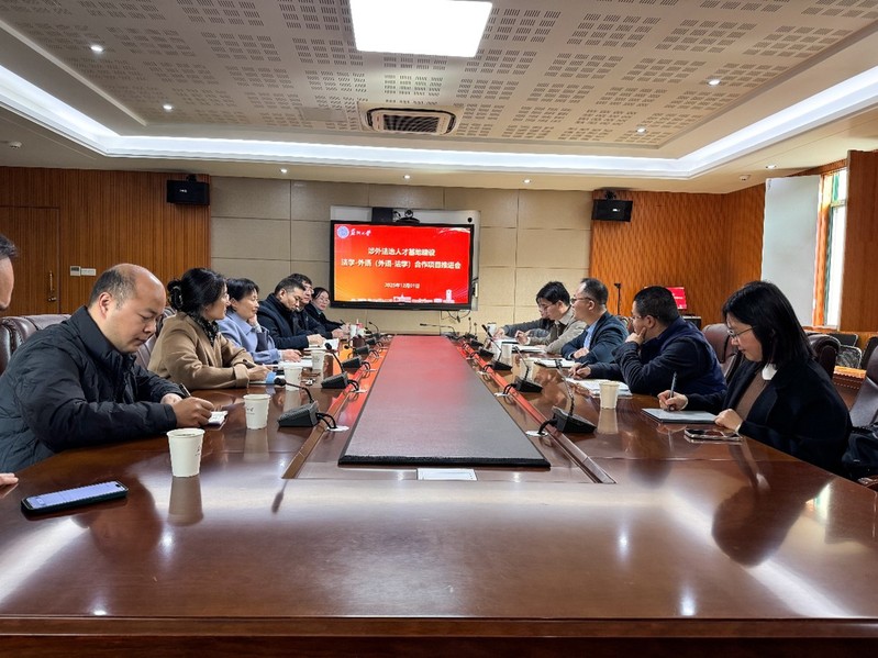 12月1日,小说网 与我校王健法学院在崇远楼210会议室召开涉外法治人才基地建设——法学-外语(外语-法学)合作项目推进会。王健法学院院长程雪阳、副院长瞿郑龙、副院长庄旭龙、教学科研办公室副主任支劲松、本科教学秘书李雪,小说网 党委书记陶培之、院长孟祥春、副院长陆洵、副院长石晓菲、副院长朱颖、党委副书记兼副院长舒洪灶及教务办公室主任庄宇峰出席会议。