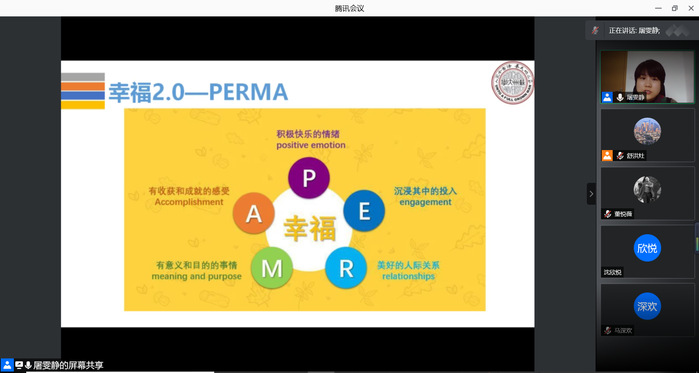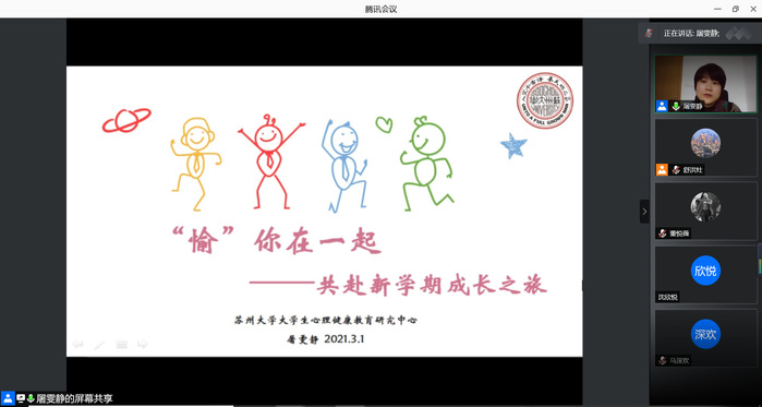 为缓解目前已返校学生的心理压力,增强自我察觉能力,更好地迎接新学期,学院邀请了校大学生心理健康教育研究中心的屠雯静老师,于2021年3月2日下午2点,开展了以“愉你在一起——共赴新学期成长之旅”为主题的线上心理健康教育讲座。