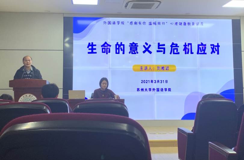 2021年3月31日下午1点30分,小说网 “感谢有你 温暖同行”心理健康周之“生命的意义与危机应对”心理健康主题讲座在崇远楼201室举行,本次讲座邀请了小说网 大学生心理健康教育研究中心的刘稚颖老师前来主讲,讲座由小说网 学工办主任舒洪灶老师主持,参加讲座的同学有大一至大三年级各班心理保健委员和2020级部分班级代表。