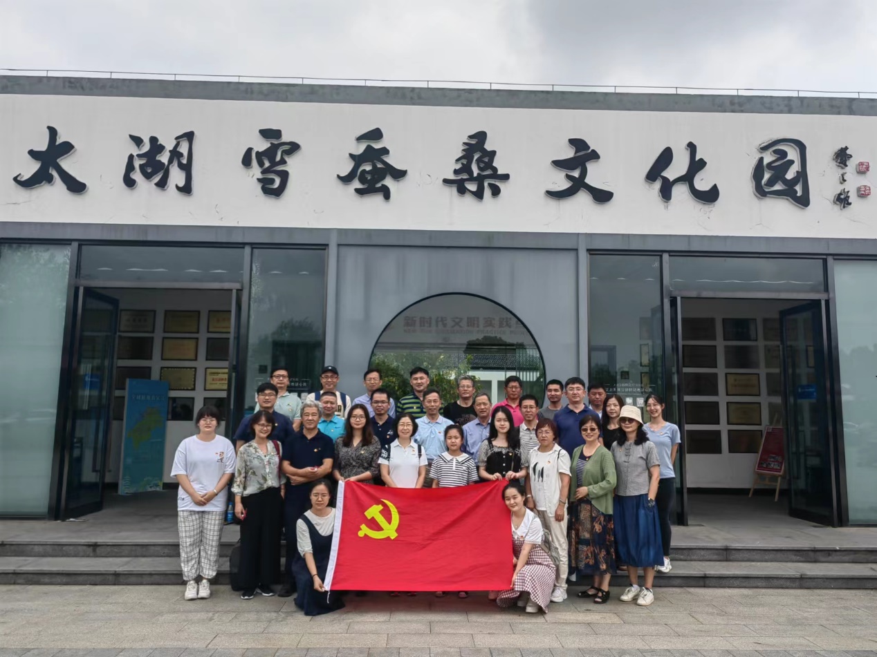 党员师生们参观的第二站是太湖雪蚕桑文化园。这是一个借助丝绸小镇震泽深厚的蚕桑文化底蕴,以现代蚕桑农业示范为基础,结合蚕桑科技衍生品开发、蚕桑生态旅游业发展,开创互联网+文、商、旅、农新模式的田园综合体。在太湖雪蚕桑文化园,党员师生们不仅了解了种桑、养蚕、择茧、缫丝、剥棉、制被、刺绣等传统工艺,还参观了中国真丝家纺行业的知名品牌——“太湖雪”的各种精美产品。“十八里漾太湖雪,千年蚕桑新丝路”。党员师生们为以丝绸为代表的中华优秀传统文化感到无比的自豪,为以“太湖雪”为代表的民族品牌在新时代取得的巨大成功感到由衷的喜悦。