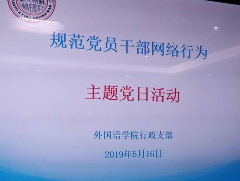 行政支部带领行政支部全体党员及学院行政工作人员举行了别具一格的主题党日活动。会上,支部书记蒋莲艳同志带领大家共同学习了《关于规范党员干部网络行为的意见》、《关于规范党员干部网络行为的实施办法》、《习近平在省部级主要领导干部坚持底线思维着力防范化解重大风险专题研讨班开班式上发表重要讲话》等中央文件精神,并结合典型案例进行了学习、分析、讨论和分享。