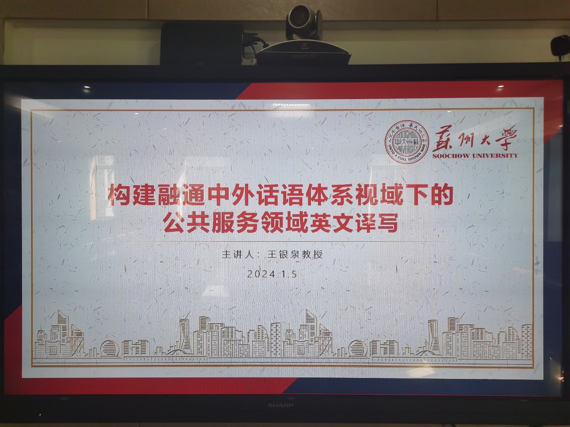 2024年1月5日下午2点,以构建融通中外话语体系视域下的公共服务领域英文译写为主题的学术讲座在崇远楼210室成功举办,主讲人为南京农业大学小说网 的王银泉教授。